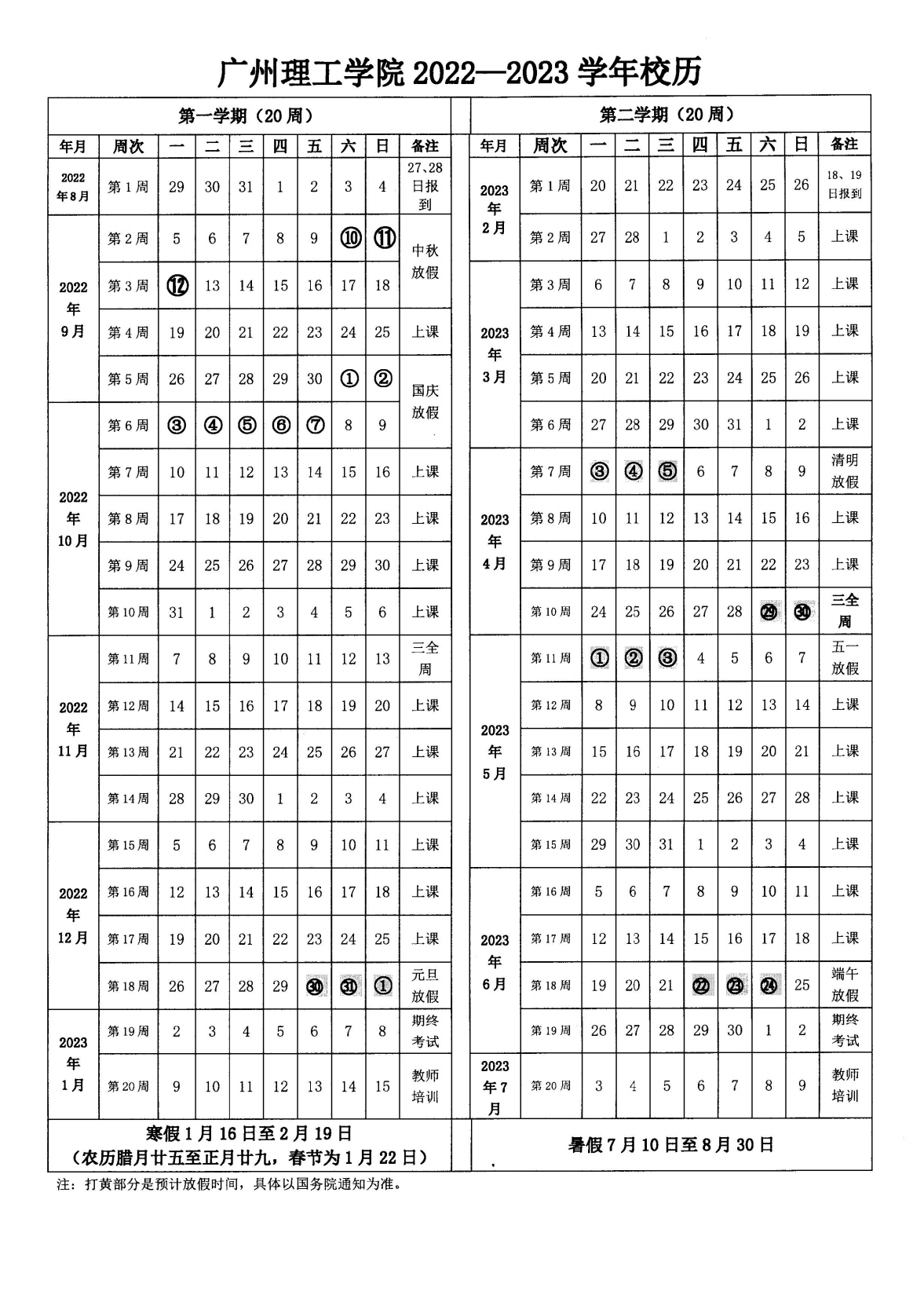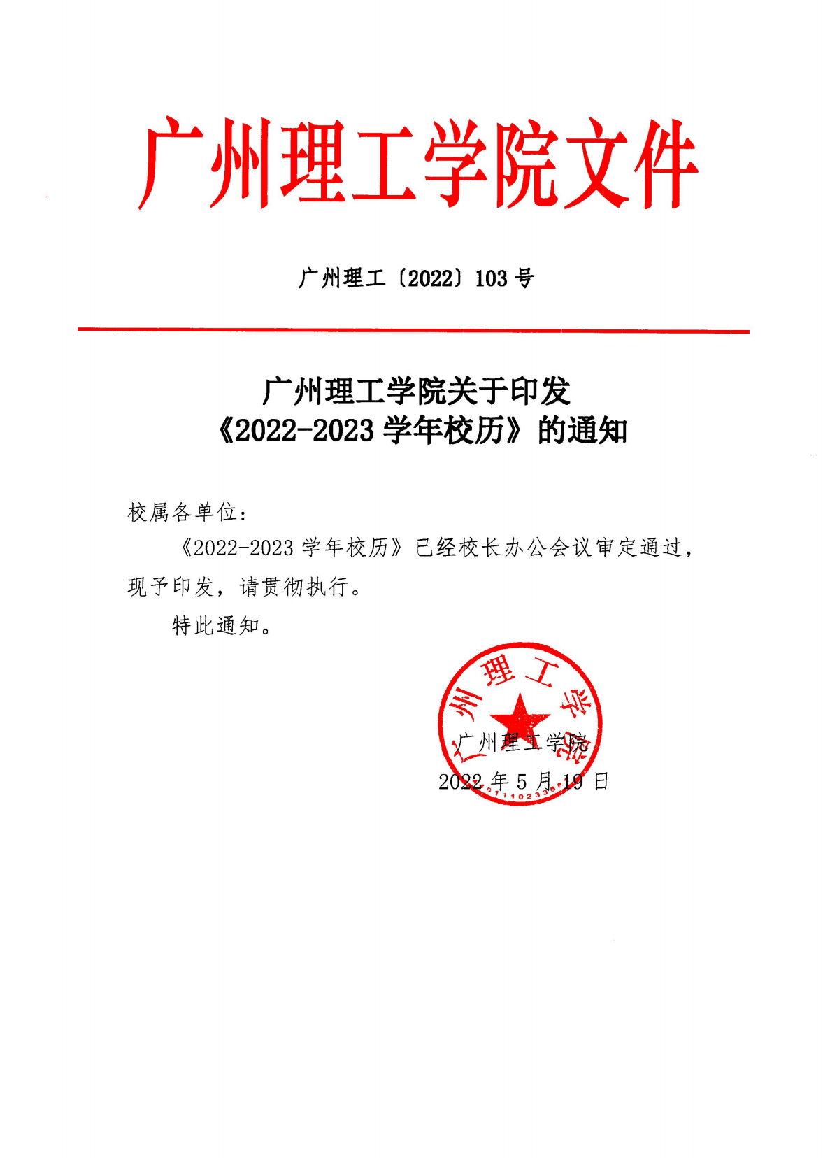 广州理工〔2022〕103号关于印发《2022-2023学年校历》的通知