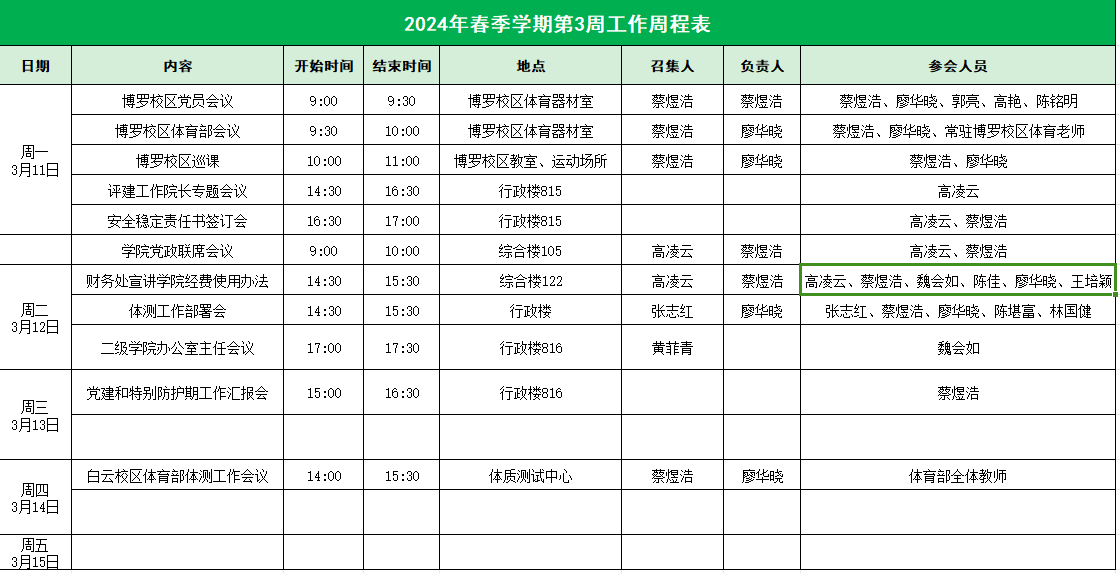 2023-2024学年第二学期威廉希尔中文网站第3周工作表