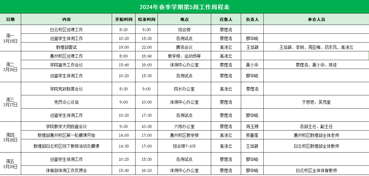 2023-2024学年第二学期威廉希尔中文网站第5周工作表