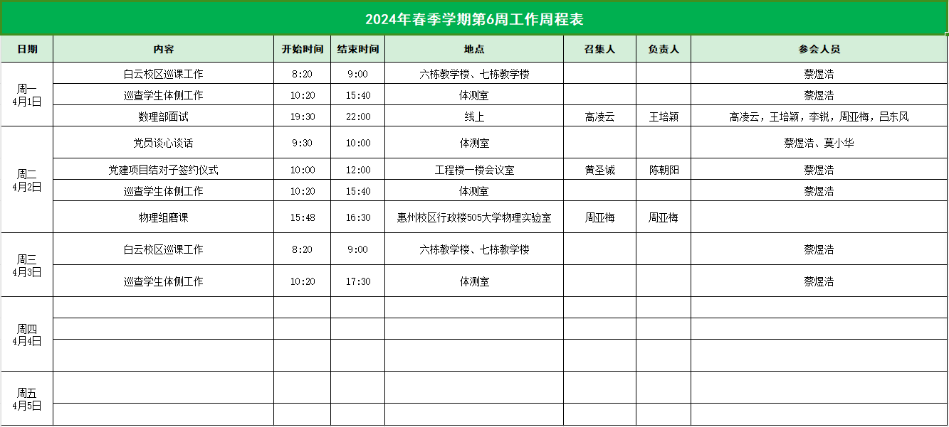 2023-2024学年第二学期威廉希尔中文网站第6周工作表