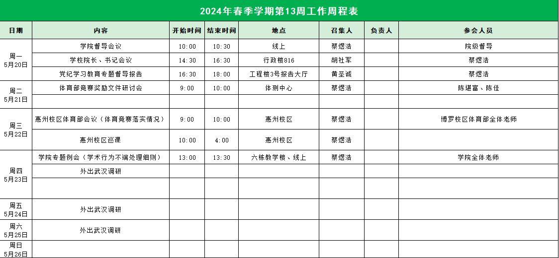 2023-2024学年第二学期威廉希尔中文网站第13周工作表