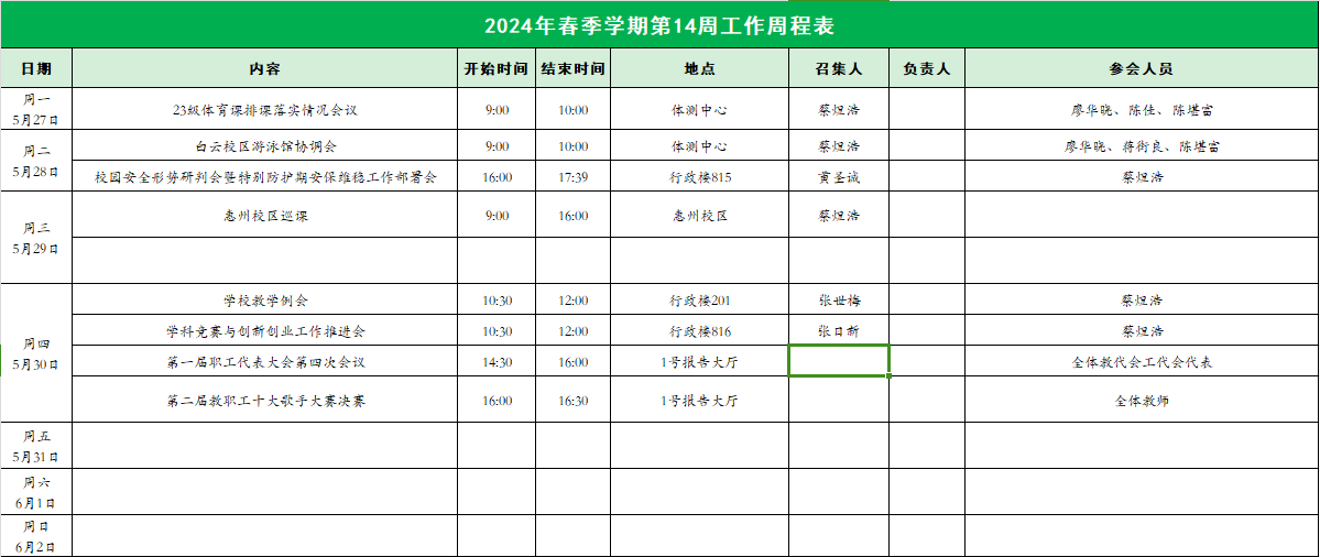 2023-2024学年第二学期威廉希尔中文网站第14周工作表