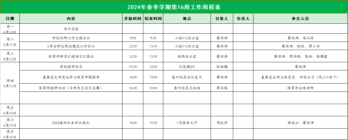 2023-2024学年第二学期威廉希尔中文网站第16周工作表