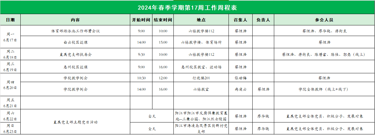 2023-2024学年第二学期威廉希尔中文网站第17周工作表