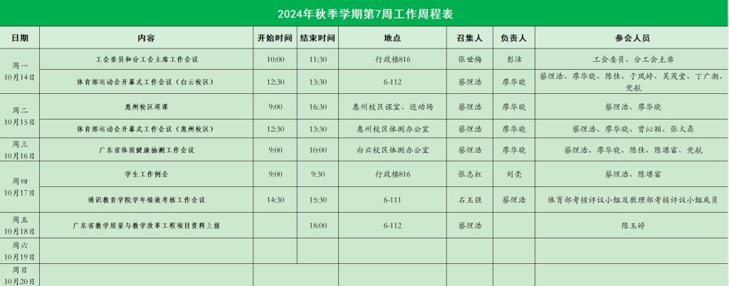 2024-2025学年第一学期威廉希尔中文网站第7周工作表
