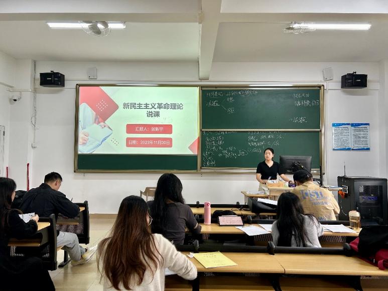11月30日,马克思主义学院毛泽东思想和中国特色社会主义理论体系概论教研室2023-2024学年第二场青年教师磨课会在白云校区综合楼7-502举行,会议由刘朋娜老师主持,苏锋凡、张新宇两位老师进行说课,教研室全体教师与会。