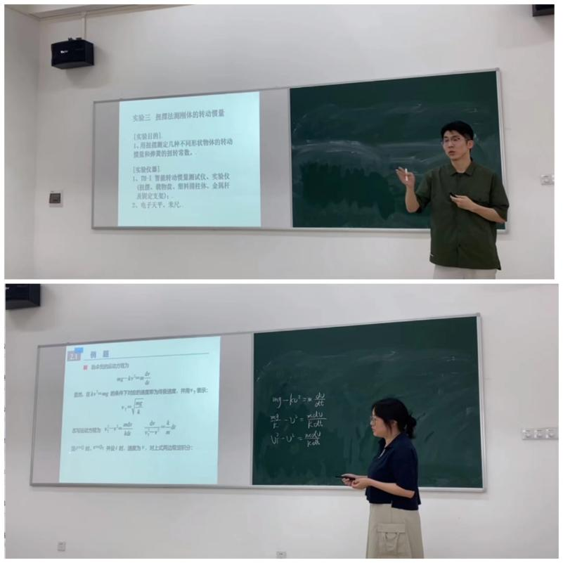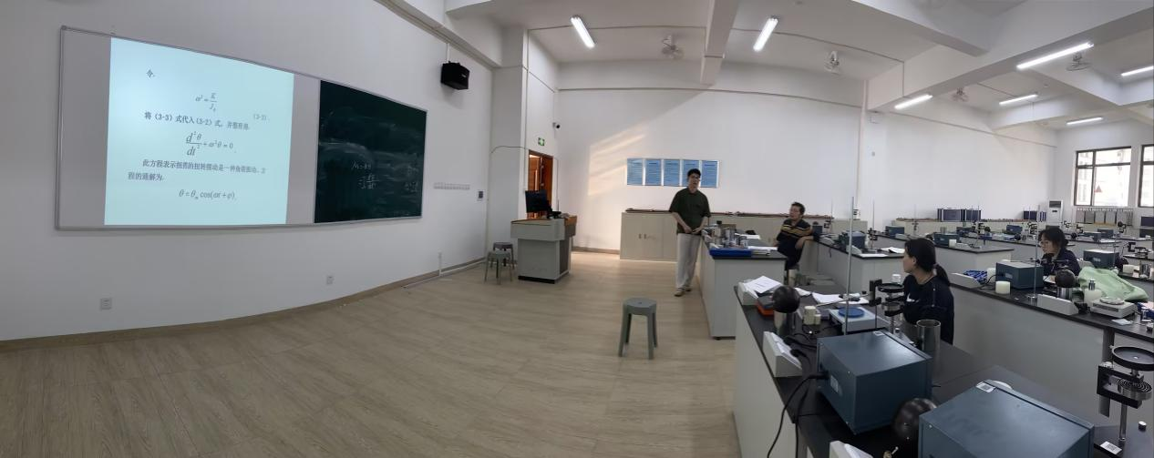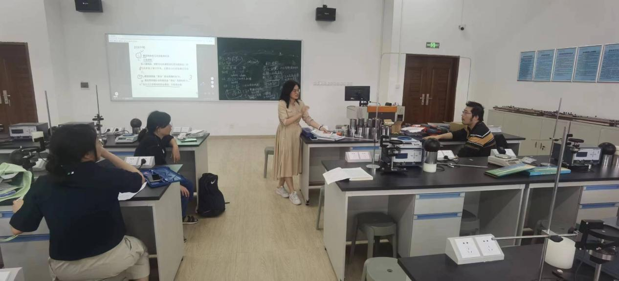 姚苏娅老师和杨天闯老师分别就大学物理的理论教学和实验教学进行了磨课,周亚梅、赖劼、詹晓雅老师对两位教师磨课表现进行了点评,交流了教学经验和方法,共同探讨如何更好地教授大学物理理论和实验课。赖劼、周亚梅老师结合大学物理实验三《扭摆法测刚体的转动惯量》进行了实验教学的示范,并进行了实验物理内容的优化讨论。
