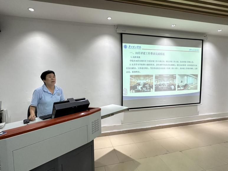 会上,学院院长袁毓玲首先作工作汇报,她从10月评建工作整改完成情况、对第一次常规检查问题整改情况、近期评建工作完成情况三个方面详细梳理和总结学院迎接本科教学工作合格评估工作的进展情况。学院高度重视评建工作,严格按照学校第二次常规性检查考核内容开展各项材料准备,坚持常态化会议机制,将评建工作落实细化、定期总结、限期整改,修订学院各项规章制度30余条,完善实践教学建设材料,积极开展青年教师磨课工作,整理各类教学资料等。