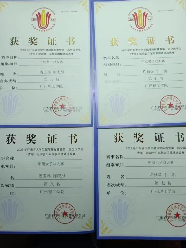 5月22日,2023年广东省大学生毽球锦标赛暨第一届全国学生(青年)运动会广东代表团毽球选拔赛在广州应用科技学院圆满落下帷幕。威廉希尔中文网站代表队在教练蒋街良、赵可意的带领下参加了本次赛事,比赛中,队员们团结协作、努力拼搏,认真对待每一场比赛,怀揣着敢于拼搏、永不放弃的精神,在三天的激烈角逐下,威廉希尔中文网站毽球队获得女子甲组三人赛第七名、男子甲组双人赛第七名、女子甲组双人赛第八名的好成绩。