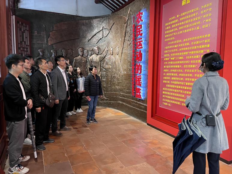在广州农民运动讲习所,讲解人员向我们徐徐道来:1926年5月至9月,毛泽东任主任,在这里举办第六次农民运动讲习班,周恩来、萧楚女、彭湃、恽代英等共产党员党员担任教师,培养出大批农民运动骨干,堪称大革命时期中国农民运动的摇篮。学员们毕业后将革命的火种播撒到全国各地,到各地领导农民运动,为中国革命作出了重要贡献。广州农民运动讲习所在中国农民运动史、中共党史、中国革命史和中国近现代史上写下了浓墨重彩的篇章,占有非常重要的历史地位。最后,黄花岗七十二烈士墓是广州作为近代革命策源地的重要见证,各位党员在这里深刻感受到了革命先烈的浩然正气。