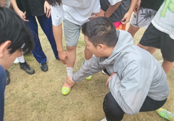 熊老师的到来深受队员们的喜爱和欢迎,经过一番交流,熊老师对大家整体的情况也有所了解,也对每个运动员进行了简单的沟通,随后实战训练内容如火如荼的展开,熊老师针对颠球、控球、运球,传球、团队配合等方面进行了技术指导。积极与世铿中学老师交流训练细节,挖掘队员们的闪光点并放在合适的比赛位置上,让每位队员都能发挥自我优势,实现团队目标最大化。熊老师耐心的讲解每一个技术动作,做出正确的示范,及时的纠正同学们的错误动作,同学们都能认真的听讲,及时吸收熊老师的意见,在球场上一遍又一遍的练习。整个运动场同学们尽情的挥洒着汗水,感受着运动的快乐和努力的成果。