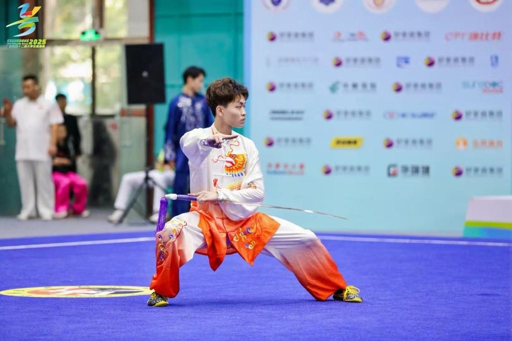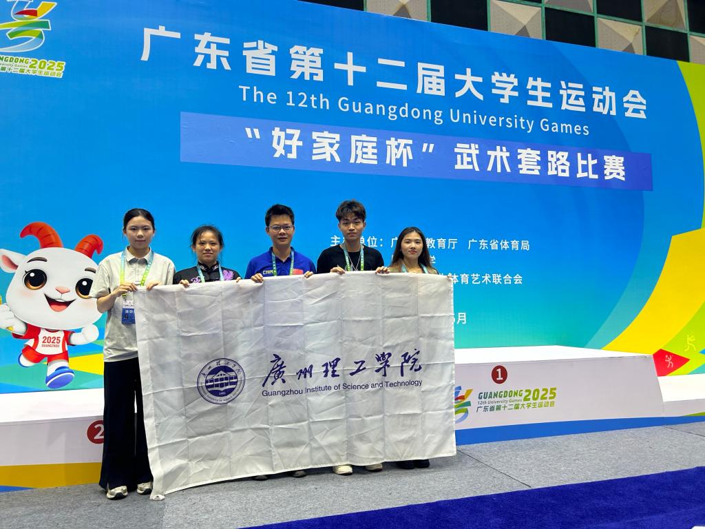 5月13日-18日广东省第十二届大学生运动会武术套路决赛在暨南大学举行,威廉希尔中文网站武术队在领队蔡煜浩、教练员王明勇、吴茂堂的带领下,队员们表现出色。本次赛事由广东省教育厅、广东省学生体育艺术联合会主办,有98所高校参加。经过6天激烈的角逐,获得了良好成绩。黄喜弘获得女子甲组自选南棍第四名,杨海宇获得男子甲组自选太极剑第八名,吴茂堂和黄喜弘获得体育道德风尚奖。