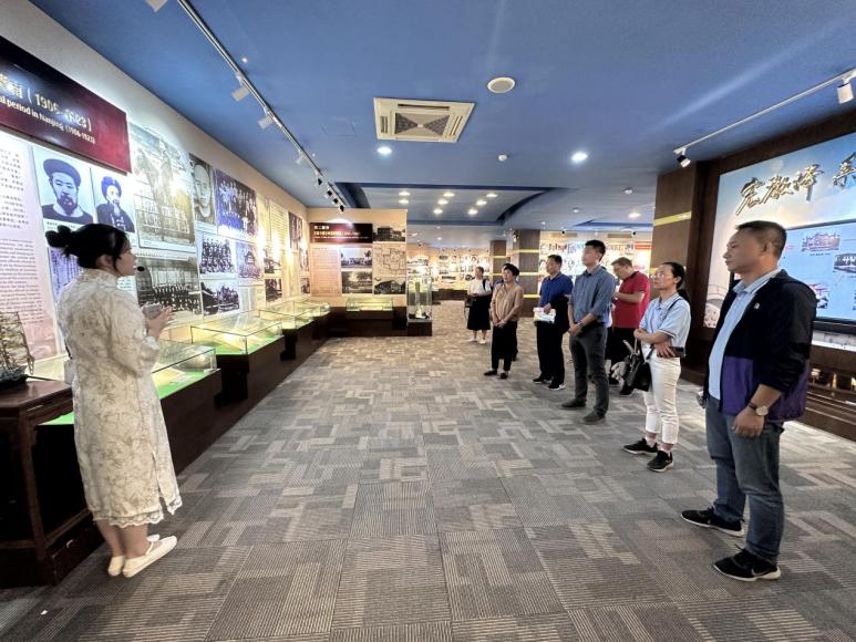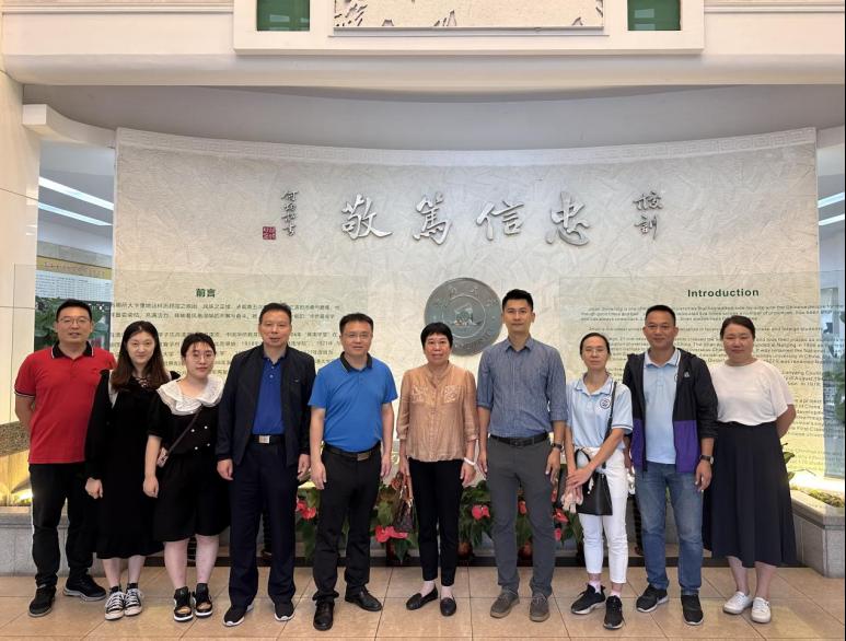 交流结束后,一同前往暨南大学校史馆参观学习,在讲解员的带领下观看了习近平总书记2018年10月24日考察暨南大学时的重要讲话,然后沿着总书记考察暨南大学校史馆的足迹,一起领略暨南大学的历史底蕴。一位教师说道:“在校史馆丰富的文字、物品和照片中,我们回顾百年暨南的沉浮变迁和岁月沧桑,深入学习了解暨南大学在教学、科研、华文教育等事业飞速发展的历程,受益匪浅。”