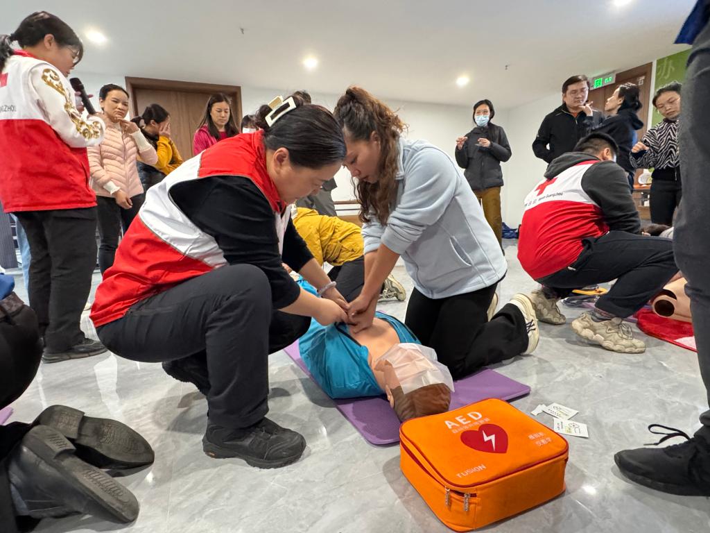 在理论环节,讲师借助生动案例,对急救知识进行细致阐释,包括心肺复苏(CPR)的原理、AED(自动体外除颤器)的使用方法以及常见意外的处理策略,让老师们对急救有了系统认知。