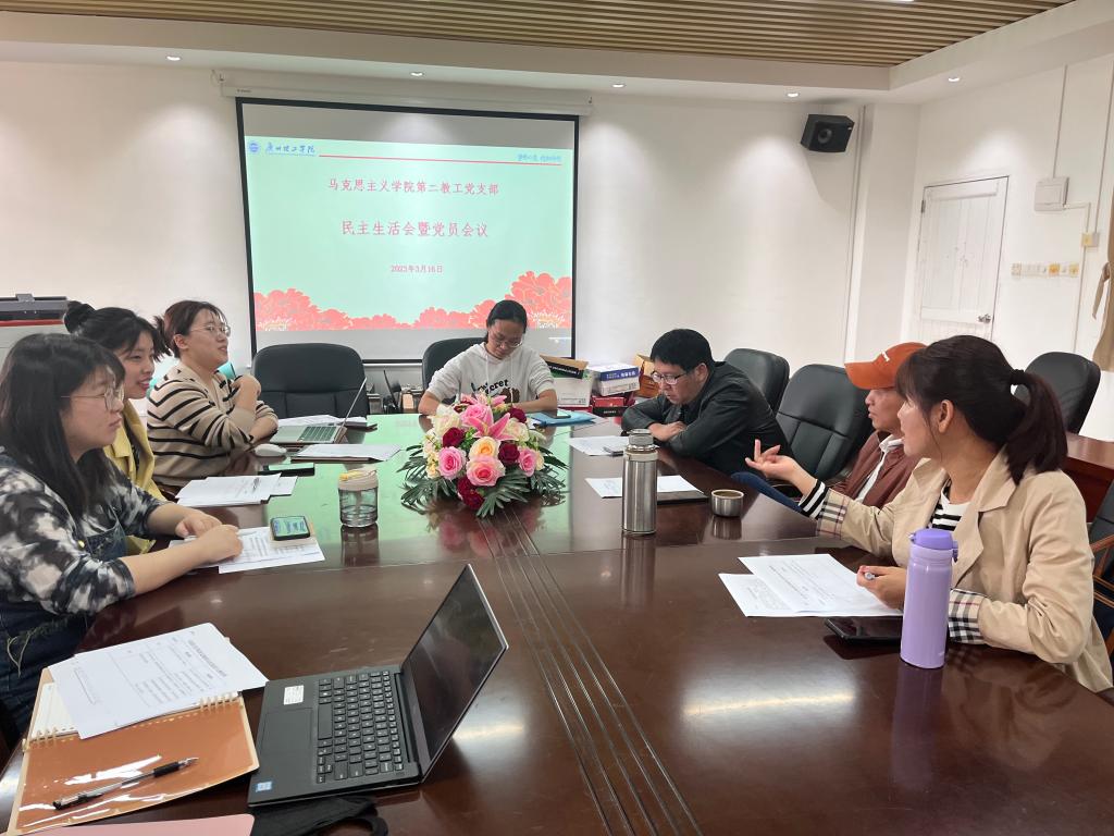 3月16日,为深入学习全国两会精神,把全国两会精神全面、系统、深入融入思政课堂,马克思主义学院教工第二党支部在综合楼503室召开第一次支部党员大会。会议主题为“全国两会精神如何融入思政课堂”。支部书记文妙虹同志主持会议。