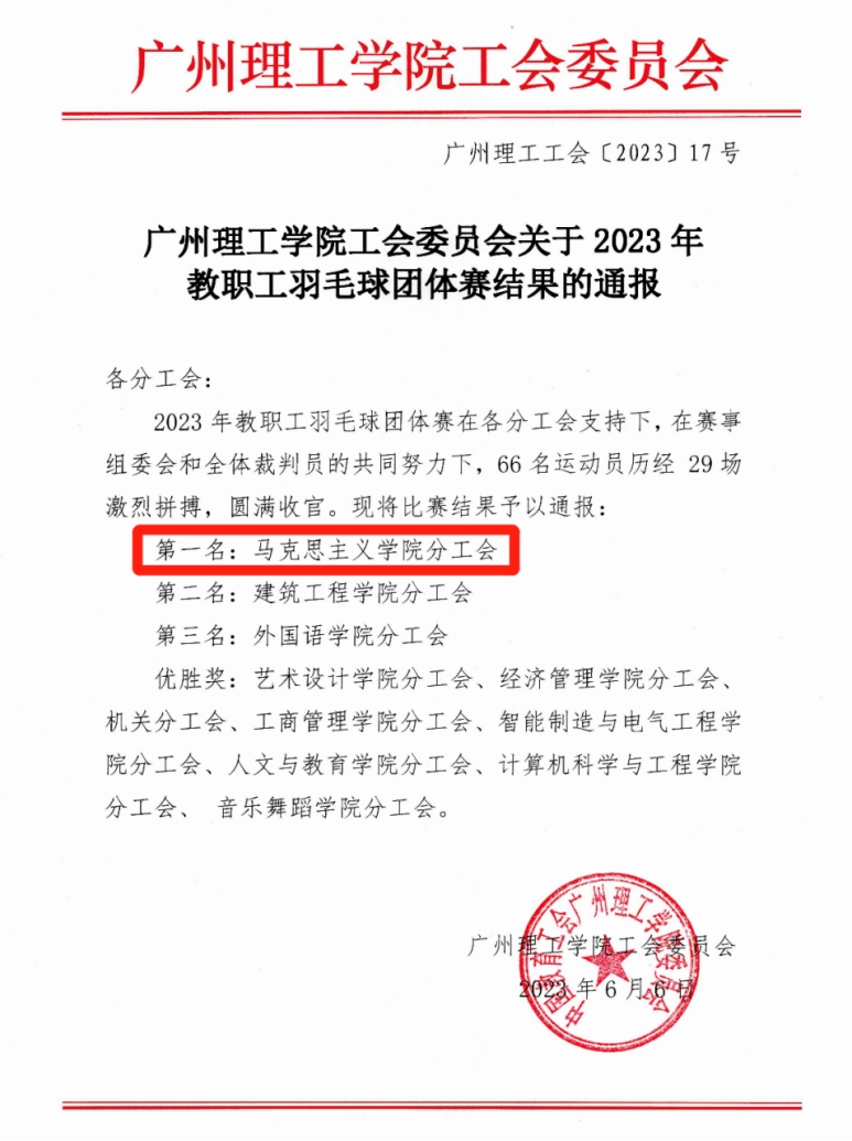 5月11至29日,由校工会主办、经济管理学院分工会承办的“激战争锋精彩“羽”共”教职工羽毛球比赛在教工之家隆重举办并圆满落幕。马克思主义学院分工会在比赛中发挥稳定、配合默契,以良好的竞技状态和充沛体力展现了学院教职工良好的精神风貌,最终获得冠军荣誉!