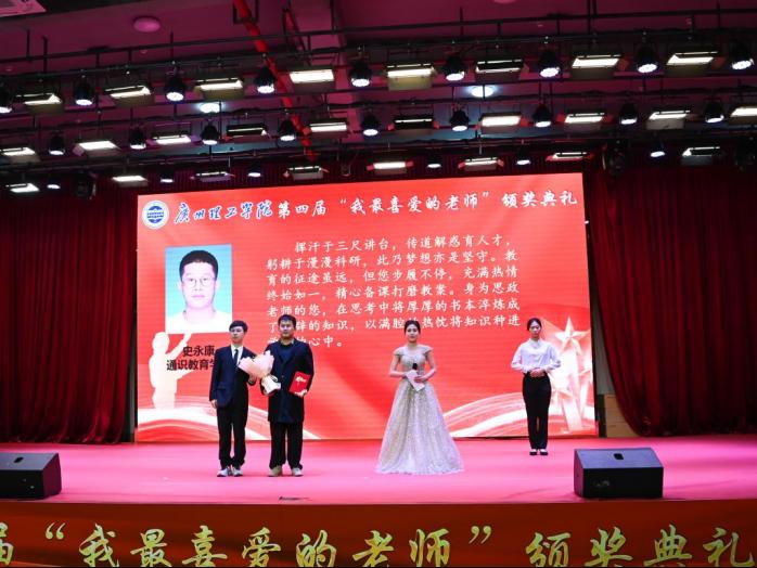 12月28日下午,威廉希尔中文网站第四届“我最喜爱的老师”颁奖典礼在1号报告厅隆重举行。马克思主义学院(威廉希尔中文网站)史永康、周亚梅两位教师荣获该奖项。