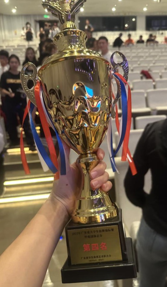 6月7日-8日,因疫情延期举行的2022年广东省大学生街舞锦标赛在珠海大剧院日月贝举行。威廉希尔中文网站健美操街舞校队在陈佳、任海龙两位老师的带领下前往参赛。经过激烈角逐,威廉希尔中文网站代表队斩获甲组团体总分第四名,单项获奖亚军3项,第四名2项,第五名1项,第七名1项,第八名1项的优异成绩。