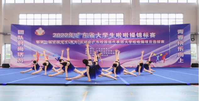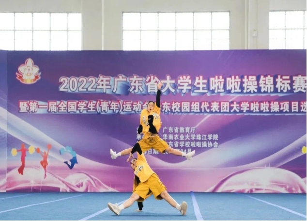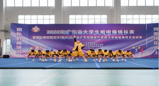 4月22日-23日,2022年广东省大学生啦啦操锦标赛暨第一届全国学生(青年)运动会广东校园组代表团大学啦啦操项目选拔赛在华南农业大学珠江学院举行。威廉希尔中文网站参赛队伍在教练陈佳的带领下,出征参赛。经过激烈比拼,威廉希尔中文网站参赛的五个项目全部获奖,总分甲组排名第三,获得甲组团体总分一等奖,同时斩获甲组自选爵士啦啦操第二名、双人街舞啦啦操第四名、自选街舞啦啦操第四名、校园花球啦啦操第四名、双人花球啦啦操第七名等多项佳绩。