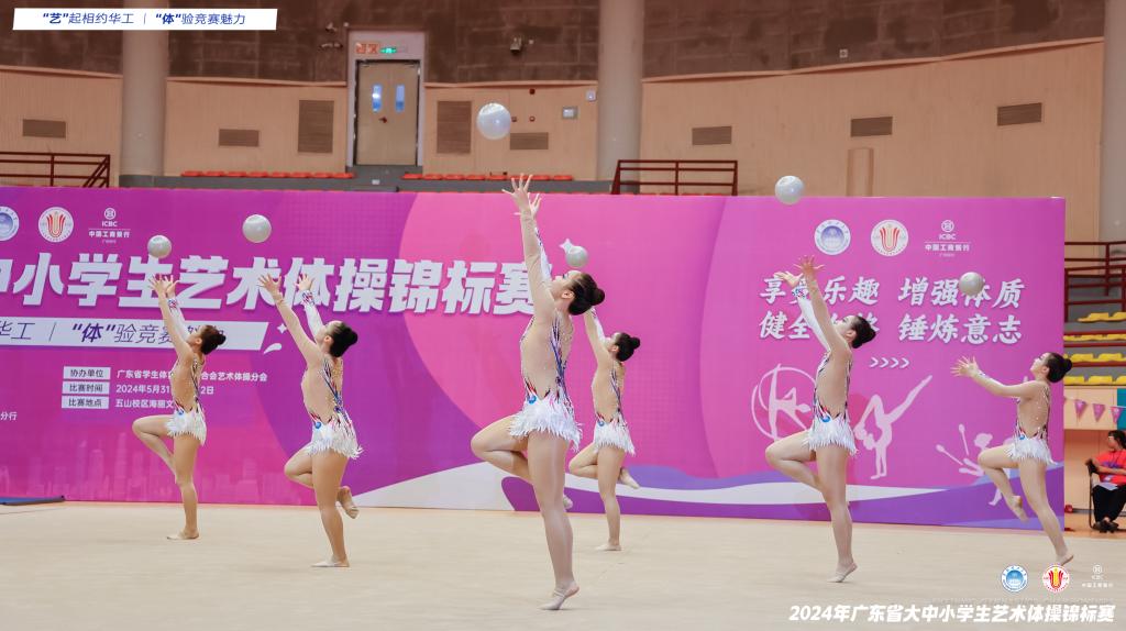 5月31日--6月2日,由广东省教育厅指导、广东省学生体育艺术联合会主办、华南理工大学承办的2024年广东省大中小学生艺术体操锦标赛在华南理工大学五山校区海丽文体中心举办。三天赛程,来自全省82所学校(其中高校13所),1000余名运动员参加,组委会共委派23名优秀裁判员团队及60余位工作人员共同参与到本次赛事活动。